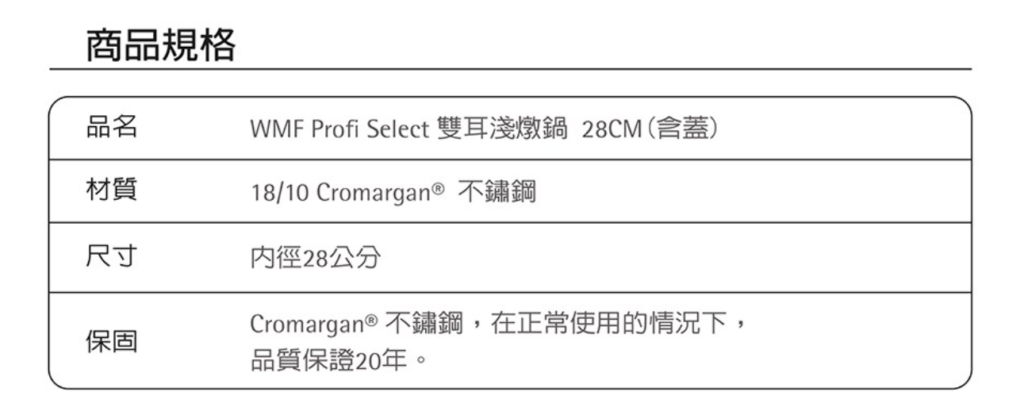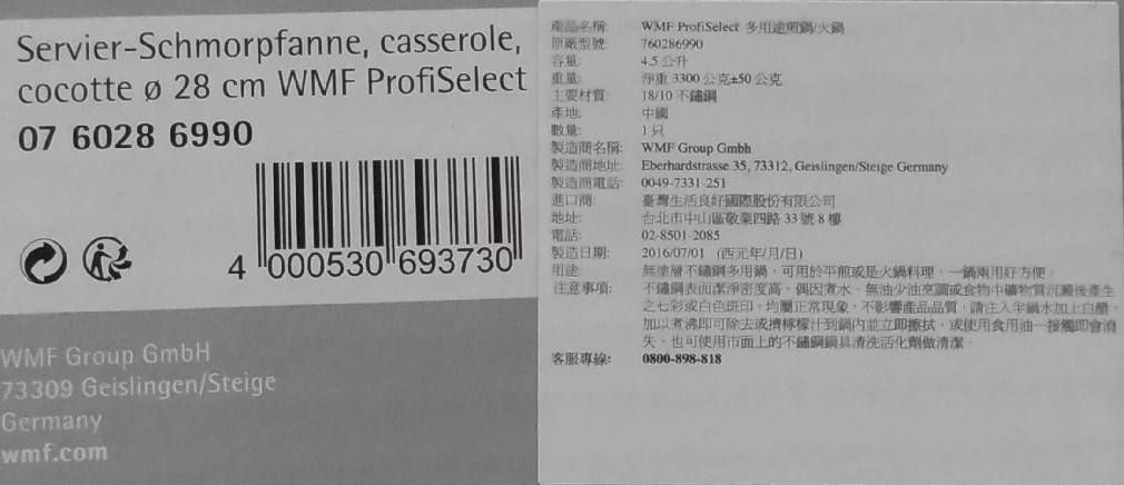 超優惠商品區現貨-清倉貨便宜賣 (生活用品)買到賺到 (限量出清) 2021-09-172021-09-18 - by emmapan 現貨-清倉便宜賣 (生活用品) 以下商品歡迎選購消費滿600元免運費不足600元運費100元 大台北區可面交 WMF ProfiSelectServier-Schmorpfanne 28 cm28cm 多用途煎鍋/火鍋 內徑:28公分 容量:4.5 公升 全新品 / 現貨1台清倉價: 1950元/1台 載入中…