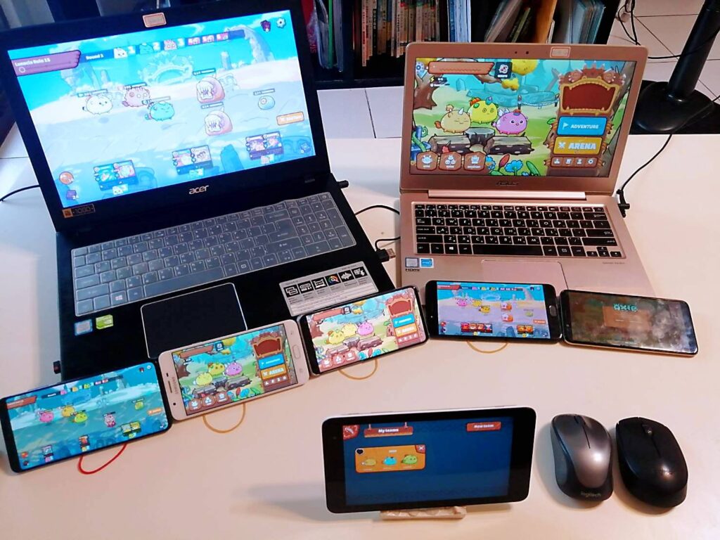 Axie Infinity 這款NFT手遊,在2018年被Sky Mavies公司研發出來,靈感來自於神奇寶貝寶可夢遊戲系列。這款遊戲可以賺取虛擬貨幣,透過不同屬性的AXIE,可以繁殖、買賣,也可從冒險模式PVE(打電腦)、競技模式PVP(玩家對戰),獲取虛擬代幣SLP、AXS而獲利。